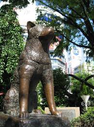 En staty av Hachiko. Står på samma plats där han brukade sitta och vänta.
